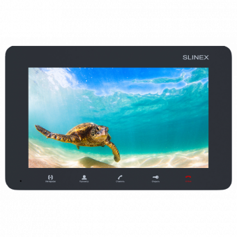 Абонентский монитор Slinex SM-07M graphite оснащен 7" цветным TFT LCD-дисплеем с разрешением 800×480, встроенной памятью на 100 снимков, слотом для microSD объемом до 32 Гбайт. Рассчитан на одновременное подключение двух аналоговых вызывных панелей и двух аналоговых камер видеонаблюдения. При объединении видеодомофонов в интерком SM-07M graphite используют как дополнительный.
