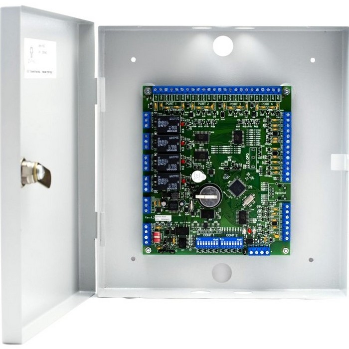 Устройство поддерживает до четырех считывателей с выходными интерфейсами Wiegand-26, Wiegand-34, Wiegand-37, Wiegand-42, Wiegand-58, Dallas Touch memory, для клавиатуры — Wiegand-4/6/8. Интерфейс связи — RS-485. Не нуждается в дополнительных устройствах для учета рабочего времени.
