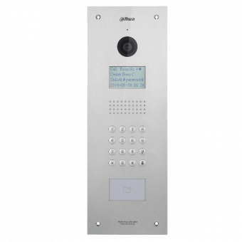Из интерфейсов на борту: сетевой RJ-45, RS-485, два тревожных входа (кнопка разблокировки, обратная связь), геркон. Материал корпуса — нержавеющая сталь. Для накладного монтажа необходим каркас DH-VTOB110, для скрытого – DH-VTOB103 (в комплект не включены). Питание — DC 12 В. Потребляемая мощность — до 10 Вт. Габариты — 143×406×42 мм, вес — 1.6 кг.