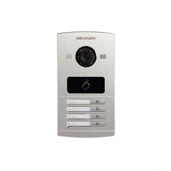Вызывная панель Hikvision DS-KV8402-IM для IP-видеодомофона рассчитана на четыре абонента. Предназначена для уличной эксплуатации в любое время года: уровень защиты корпуса от влаги и пыли — IP65, рабочие температуры — –40°C… +60 °C. Поставляется с предустановленной операционной системой Linux. Укомплектована IP-камерой с CMOS-матрицей, ИК-подсветкой и широкоугольным объективом, считывателем IC-карт и механической клавиатурой. Поддерживает видеокодек H.264 и аудиосжатие G.711 U.